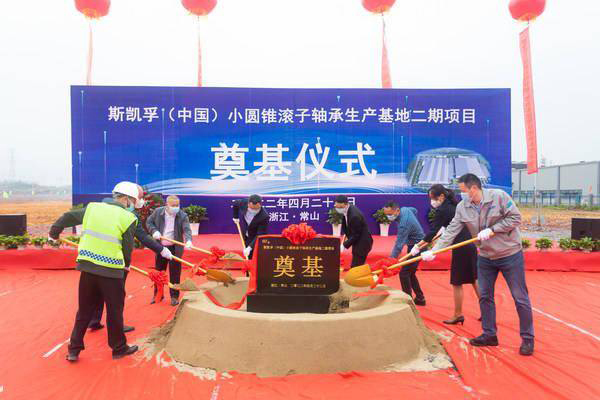 近日,斯凱孚中國小圓錐滾子軸承生產(chǎn)基地二期項目奠基儀式在衢州常山舉行